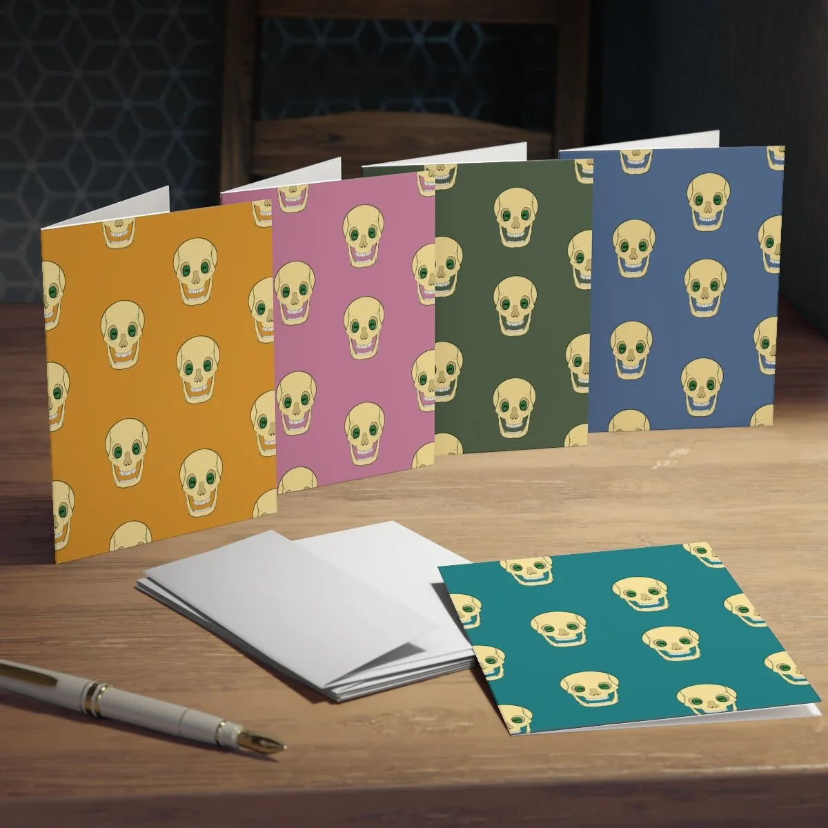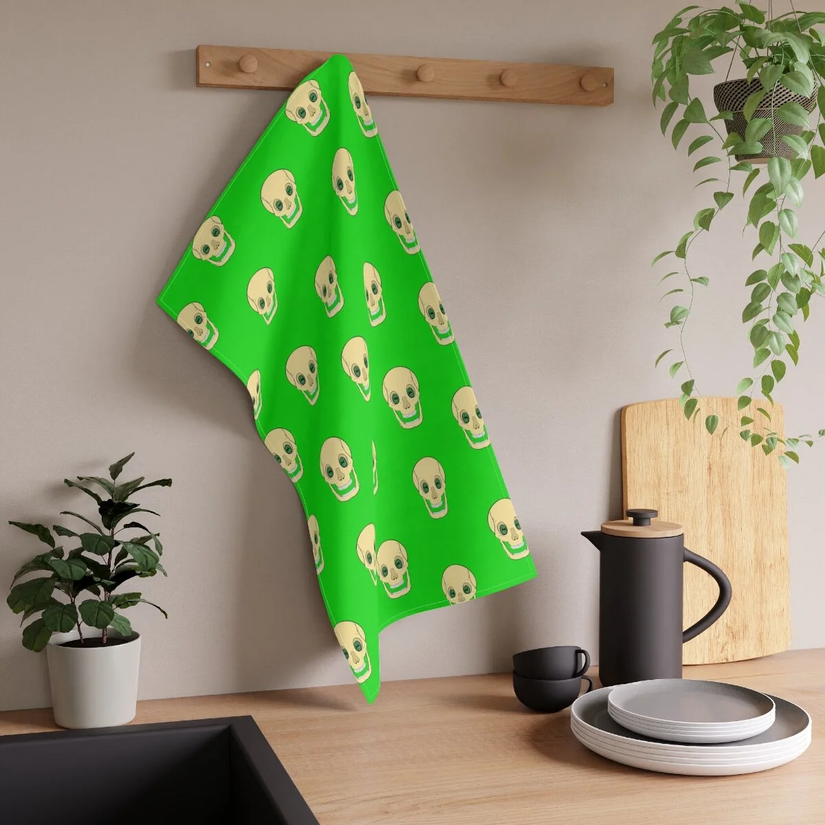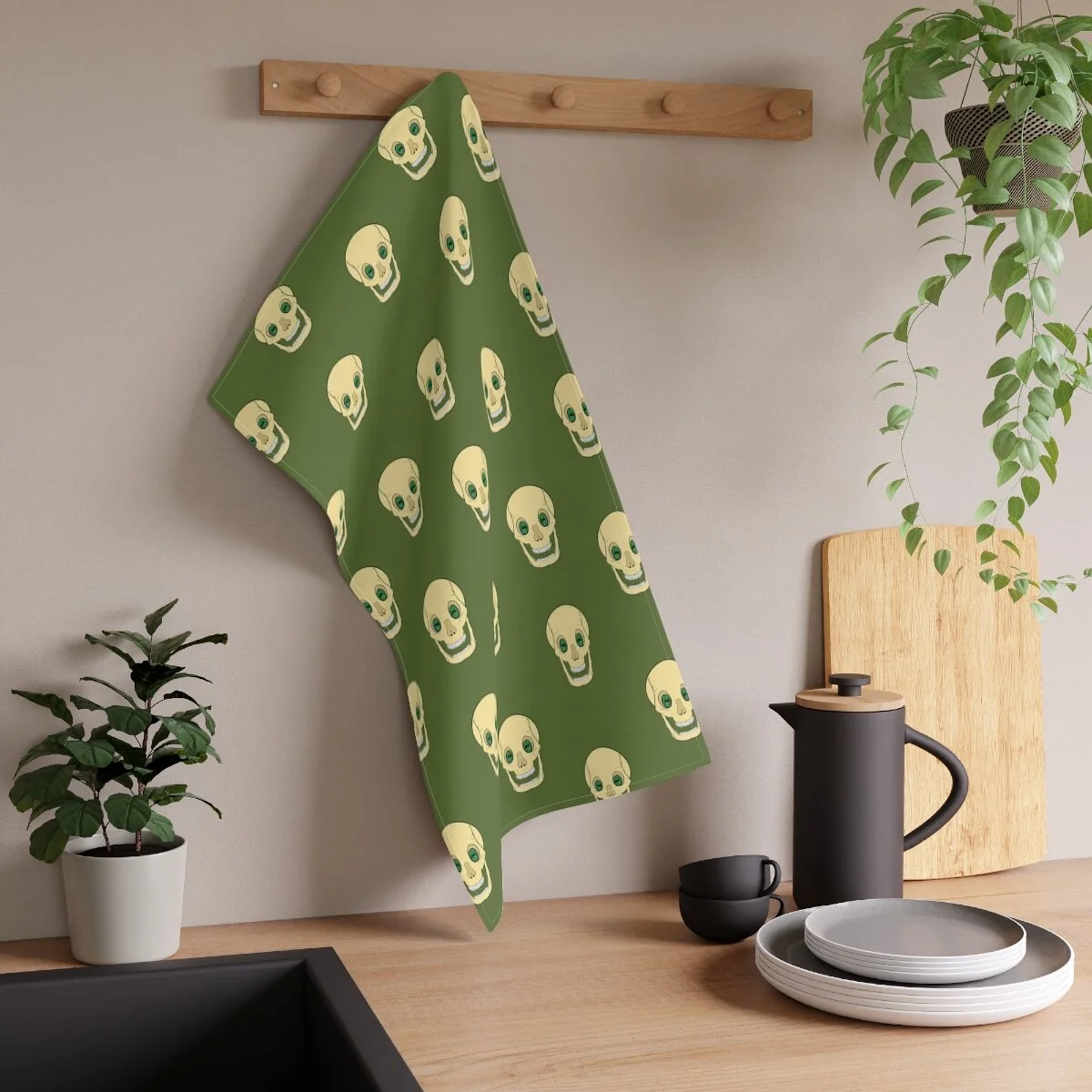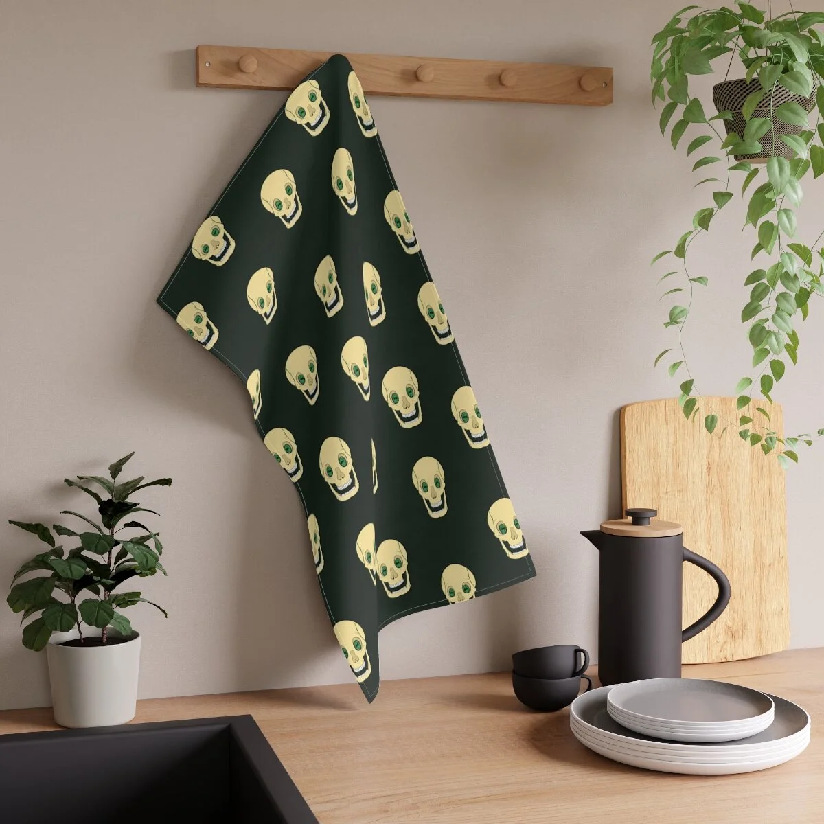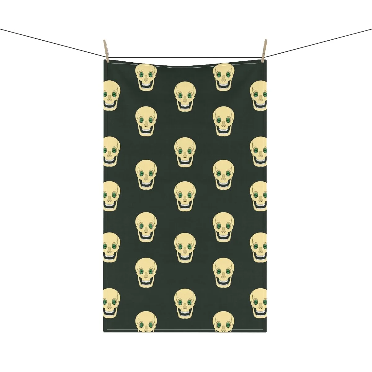 Spooky Skull on Deep Green Kitchen Towel