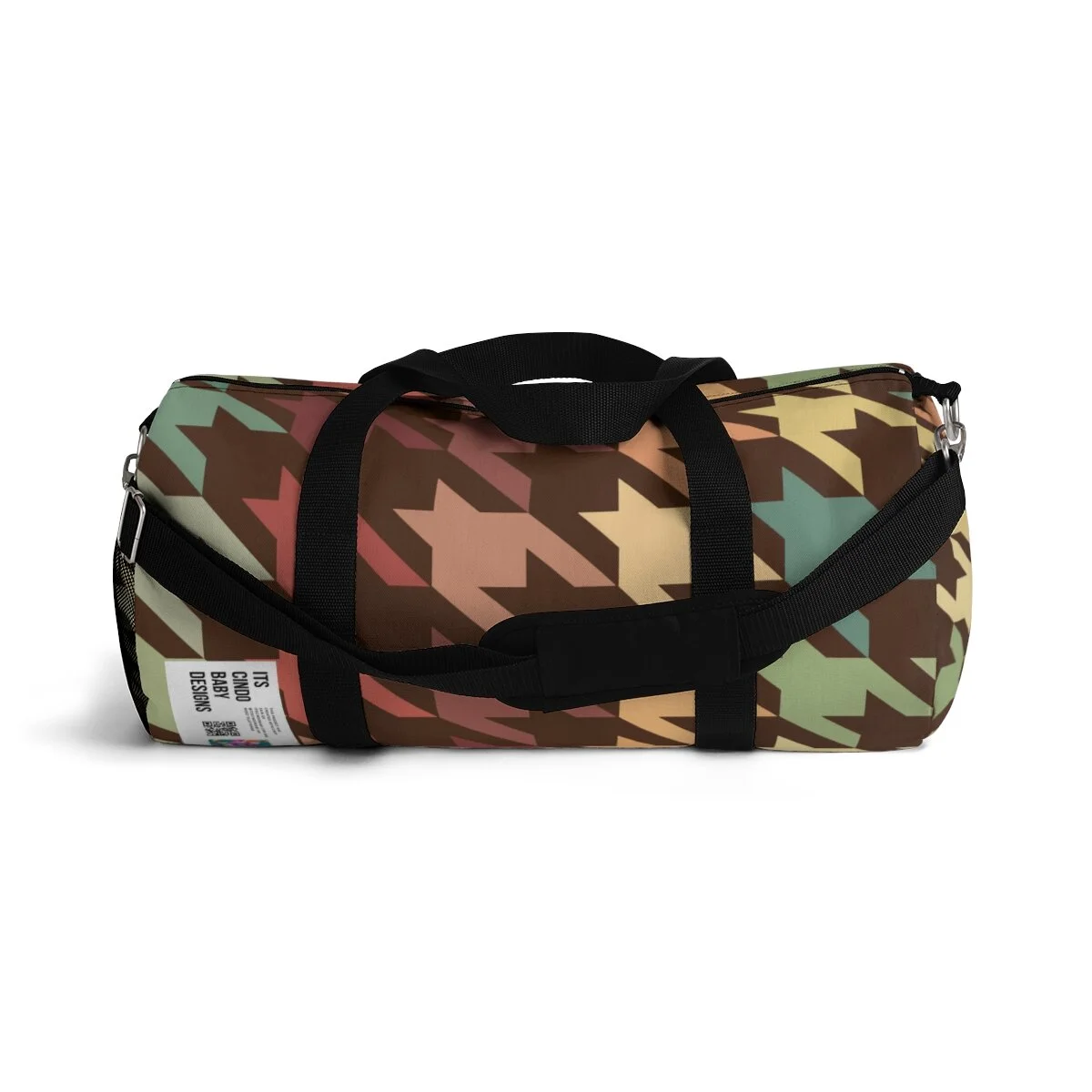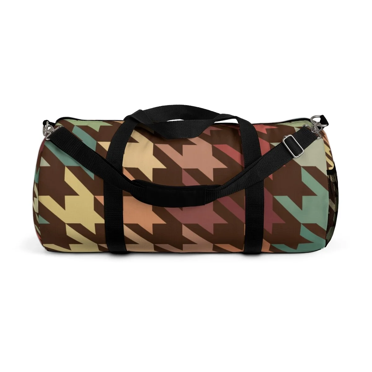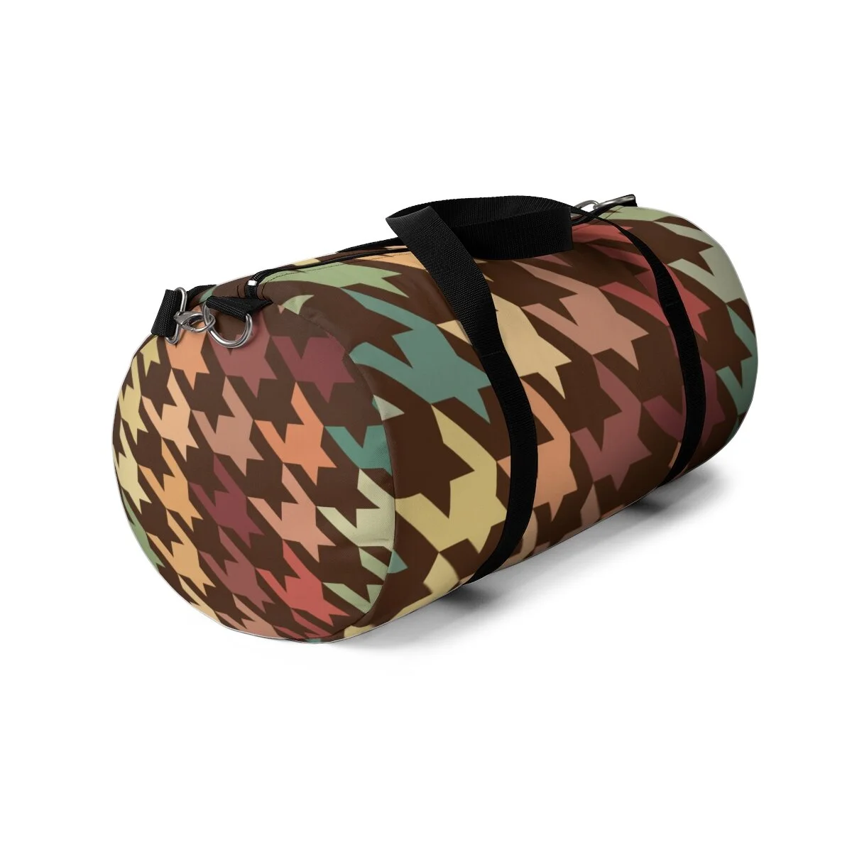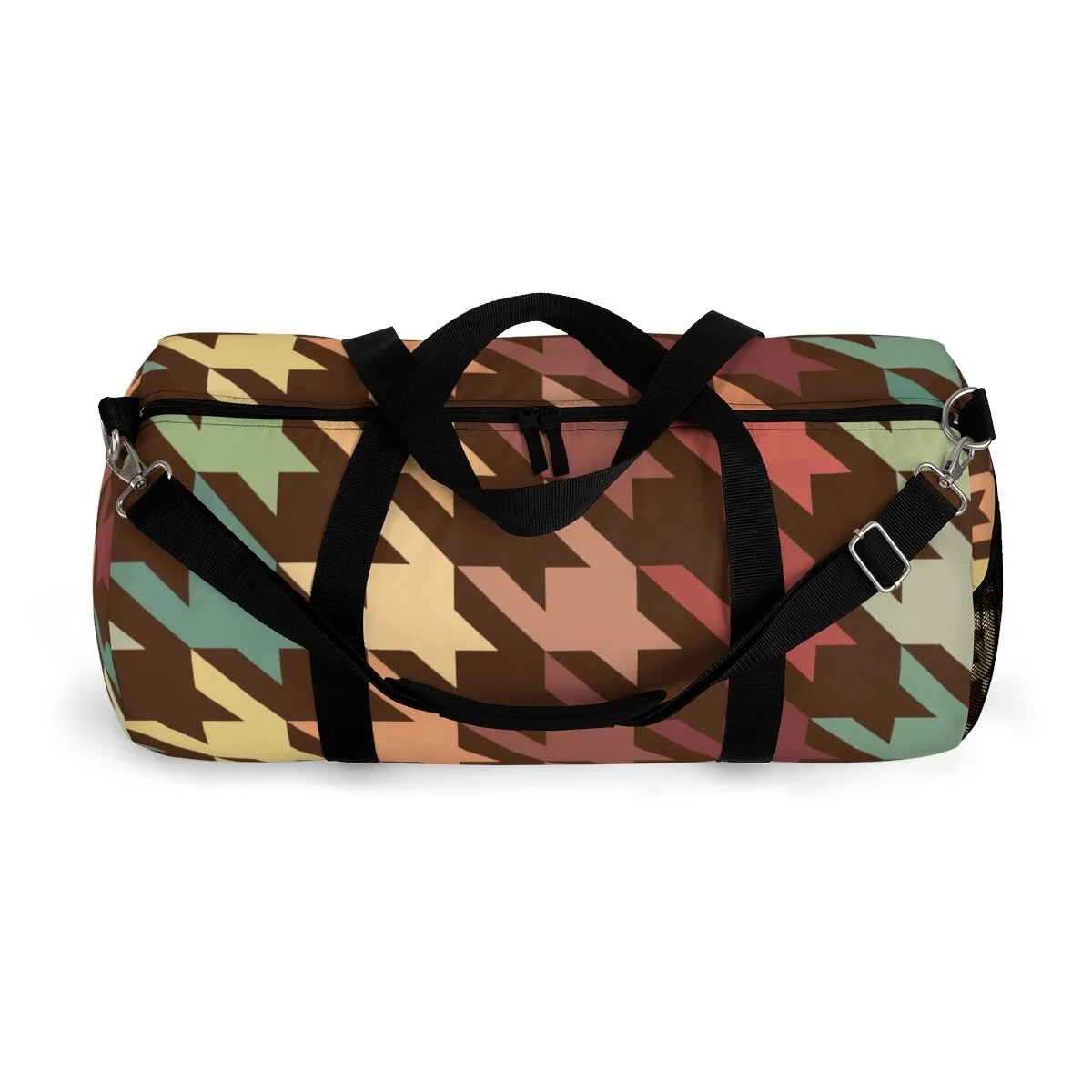 Grapefruit on Brown Houndstooth Duffel Bag
