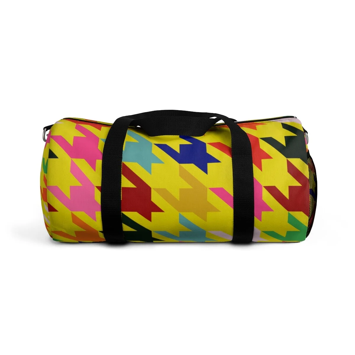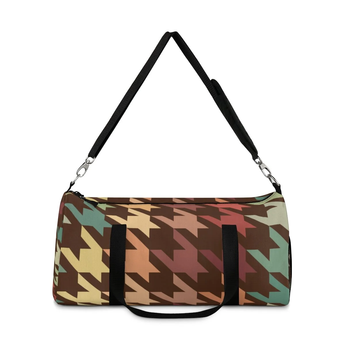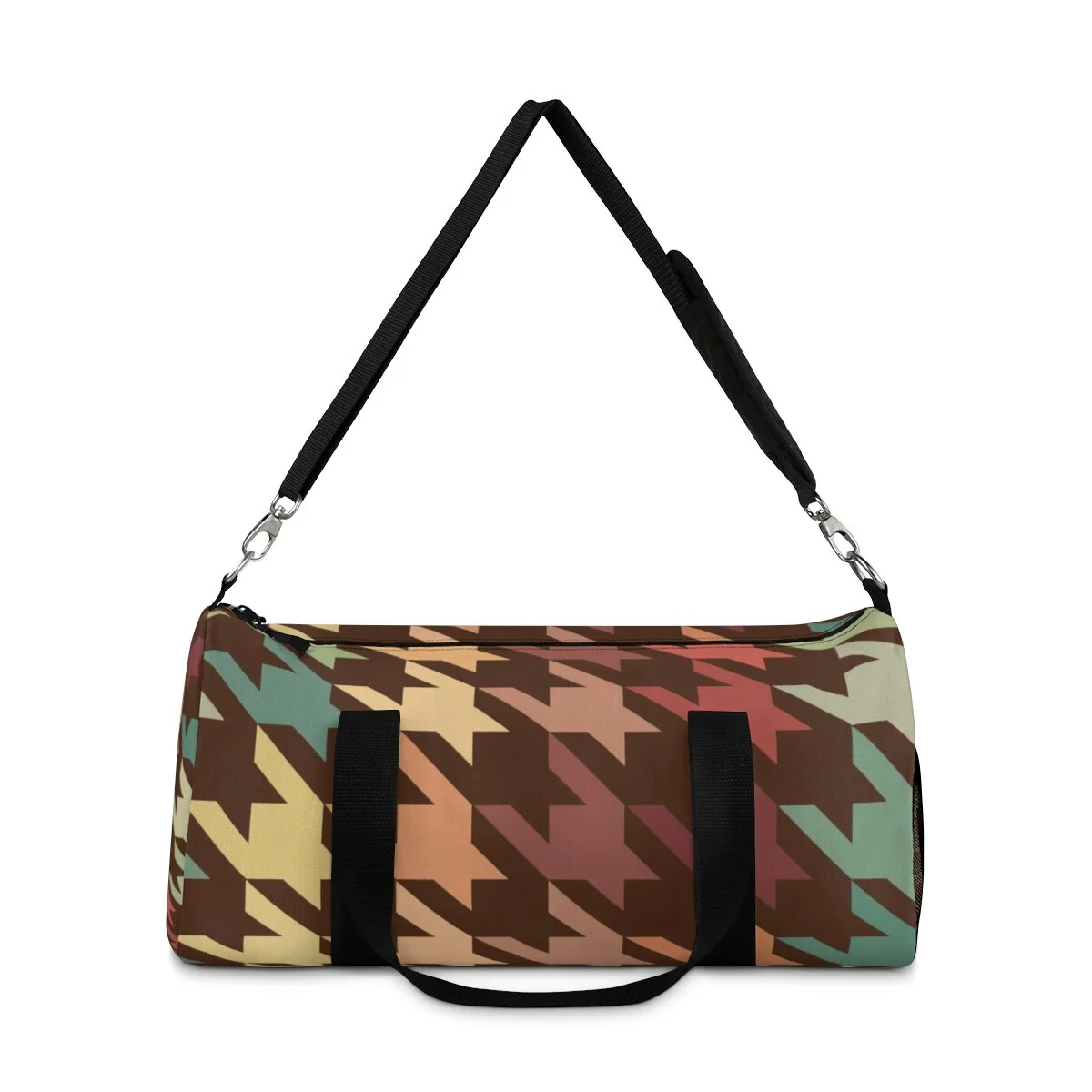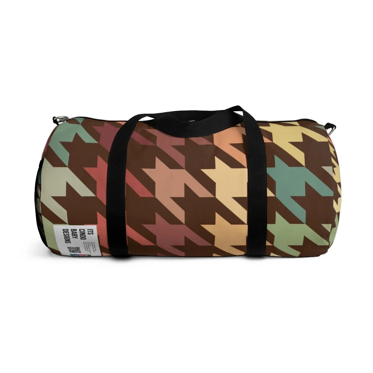 Grapefruit on Brown Houndstooth Duffel Bag