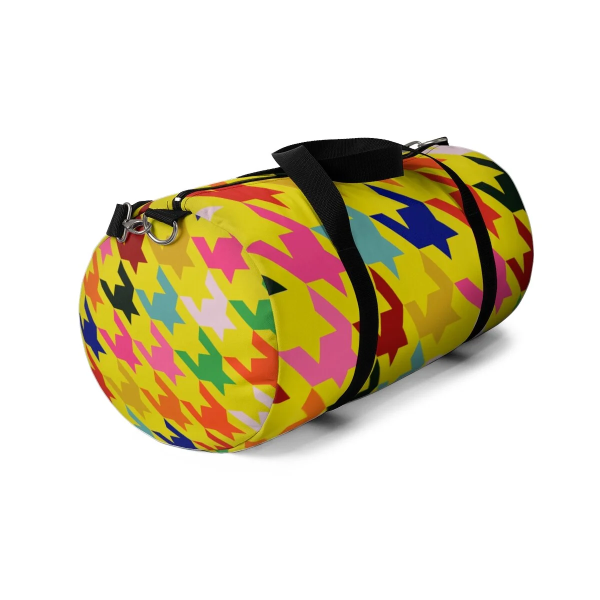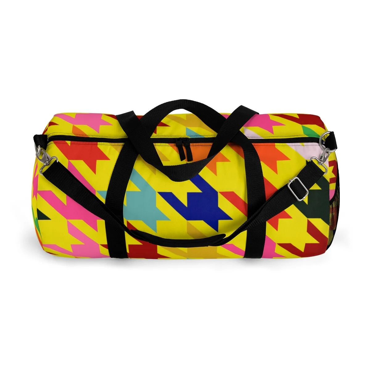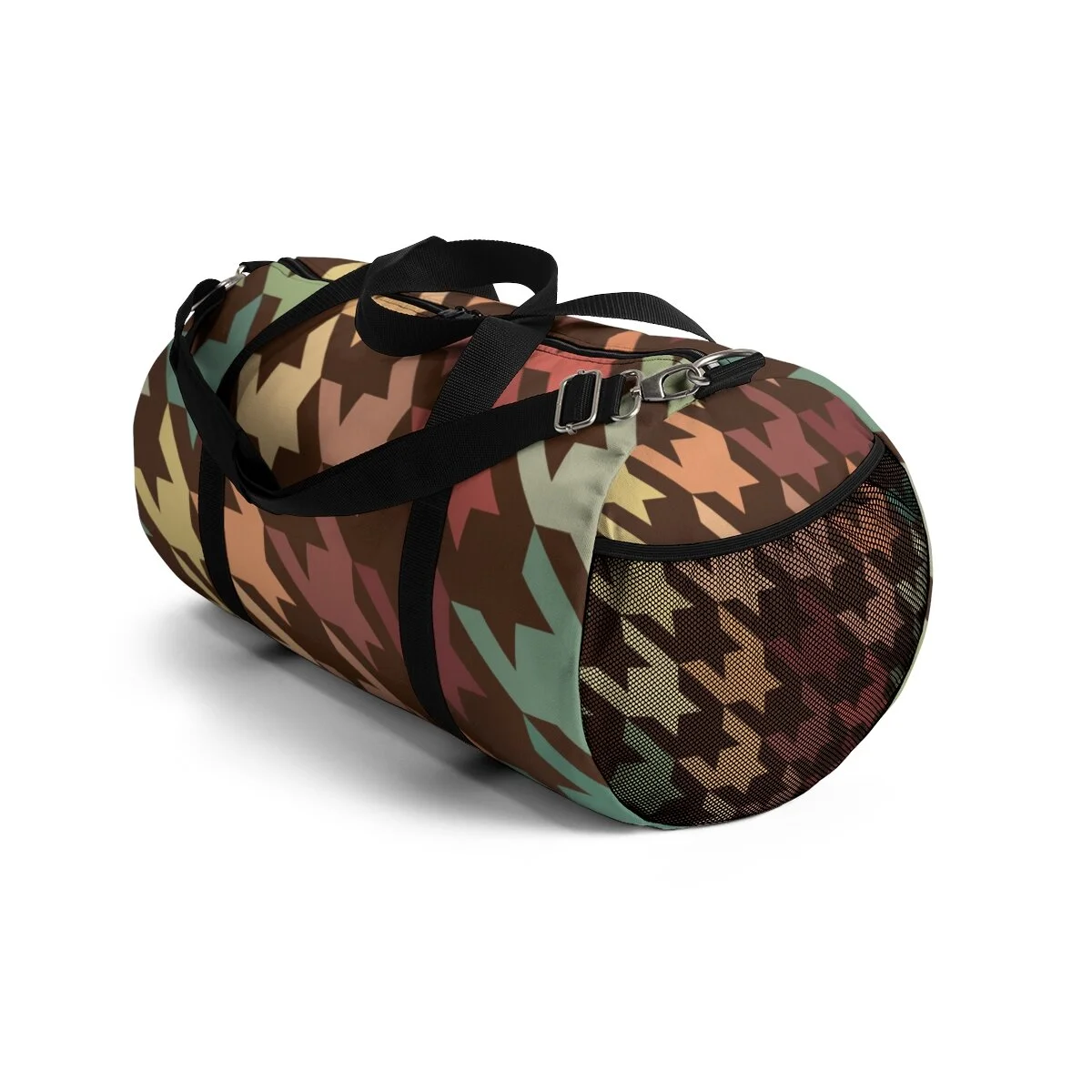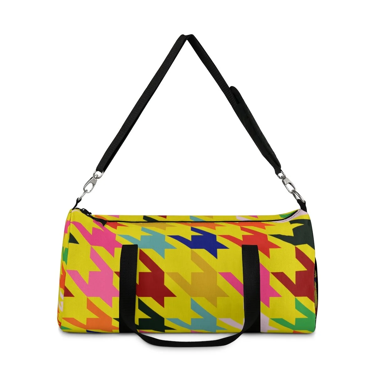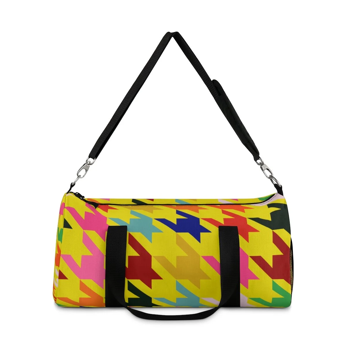 Grapefruit on Brown Houndstooth Duffel Bag
