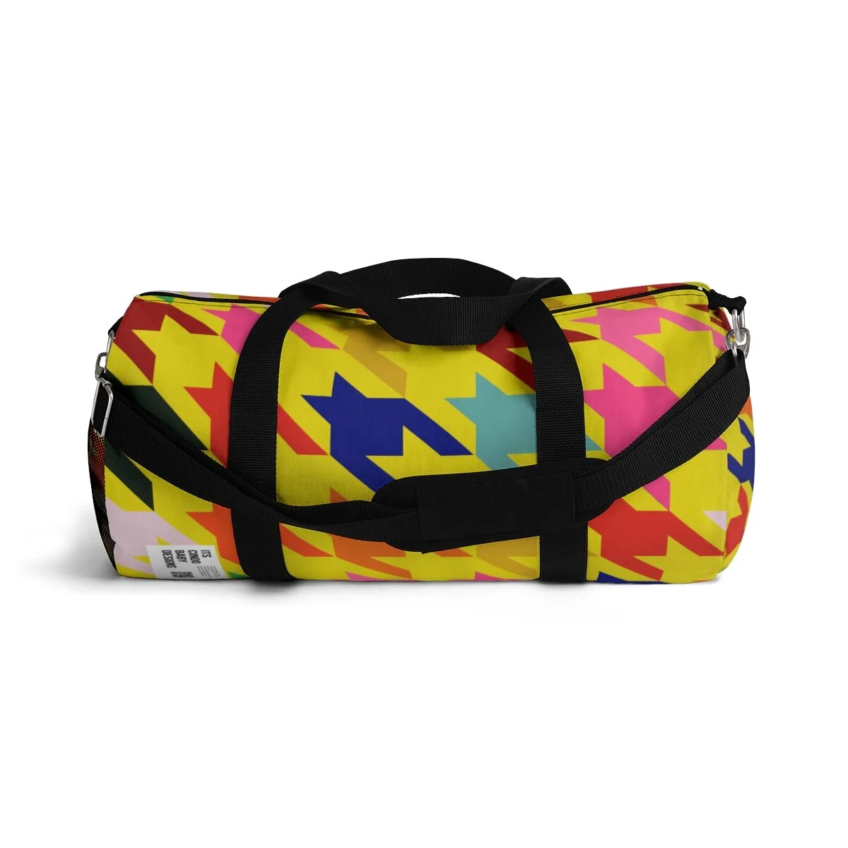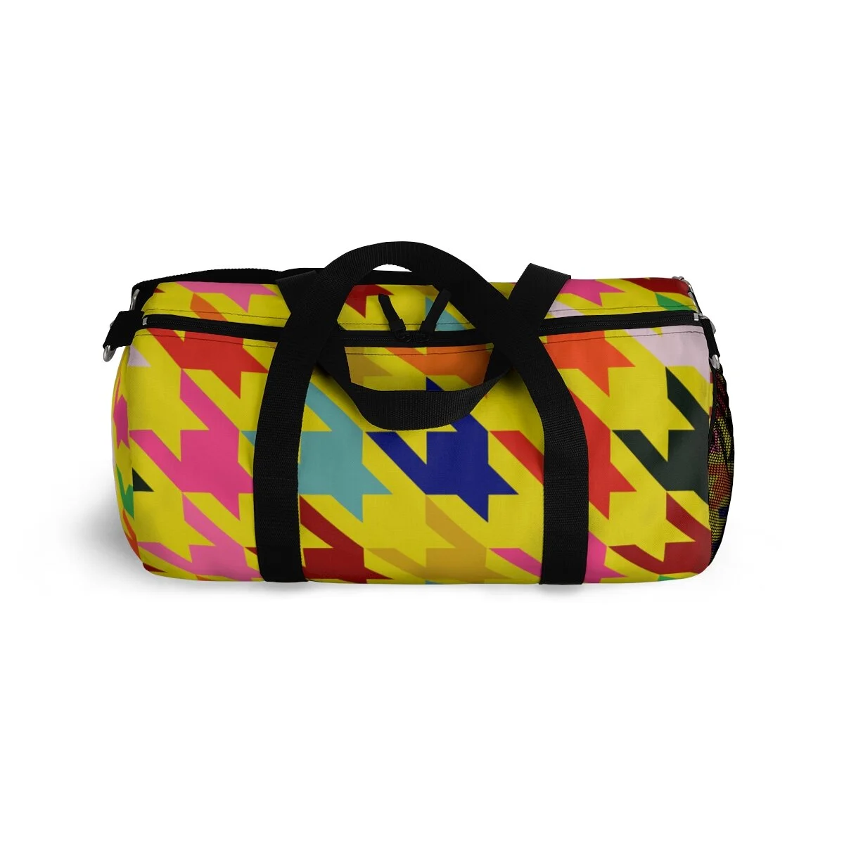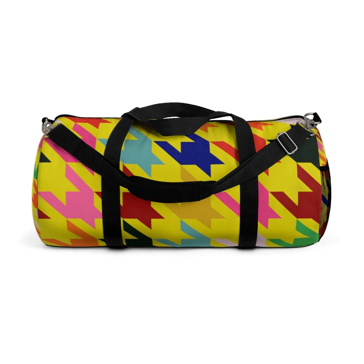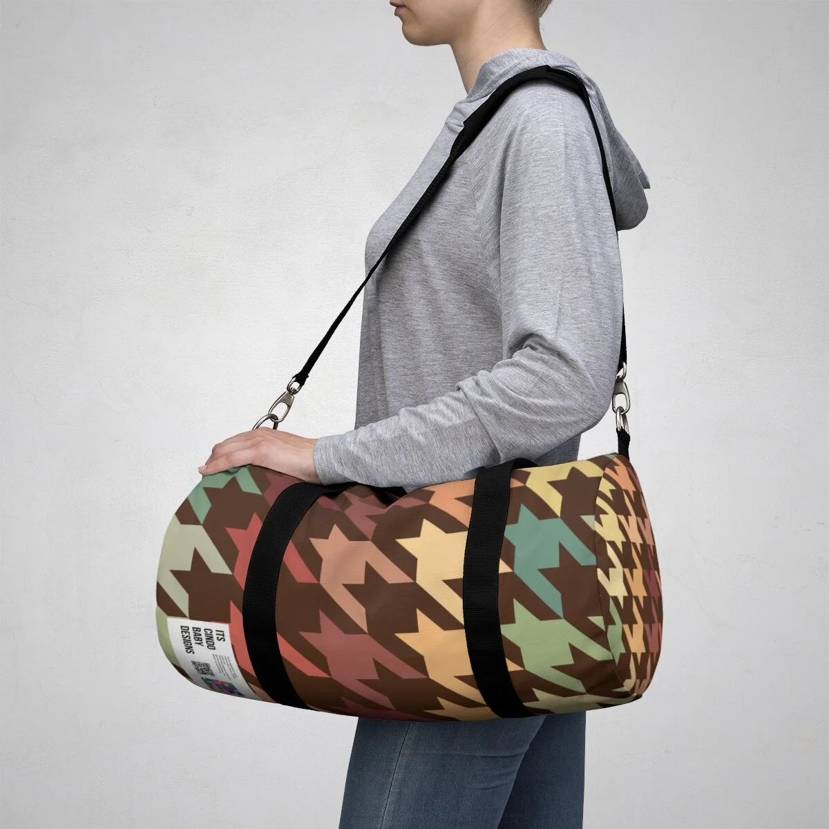 Grapefruit on Brown Houndstooth Duffel Bag