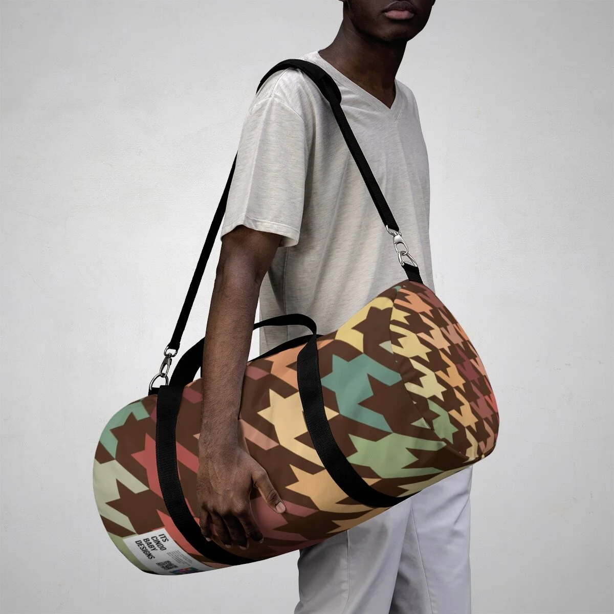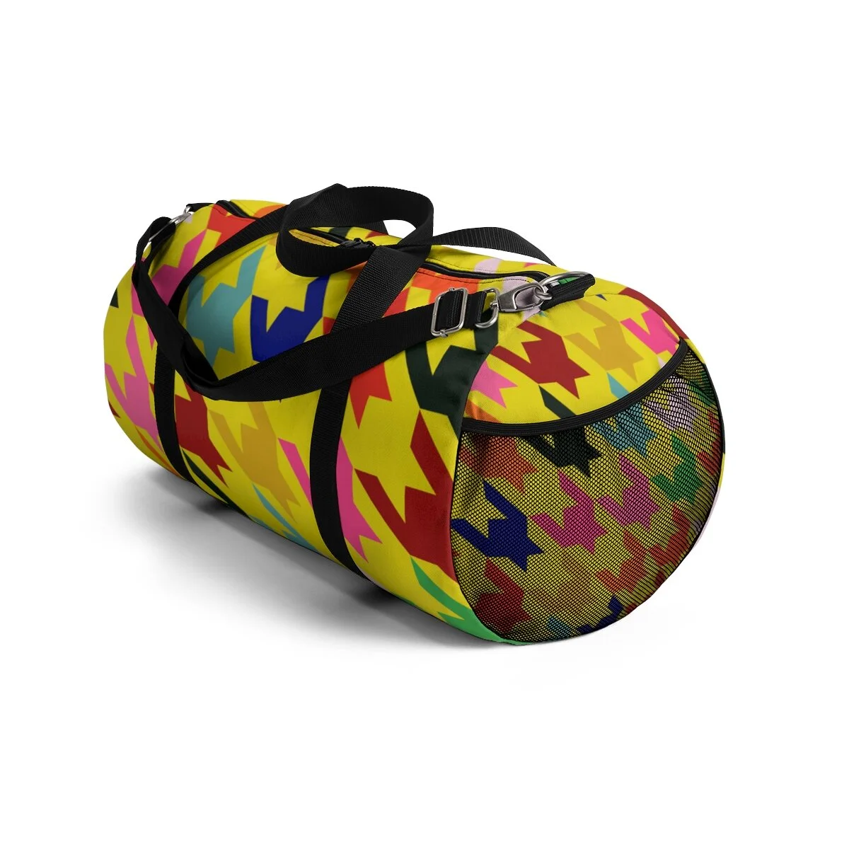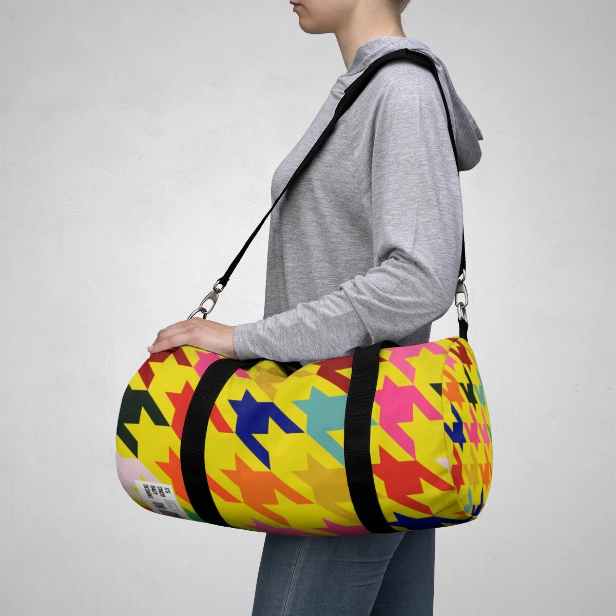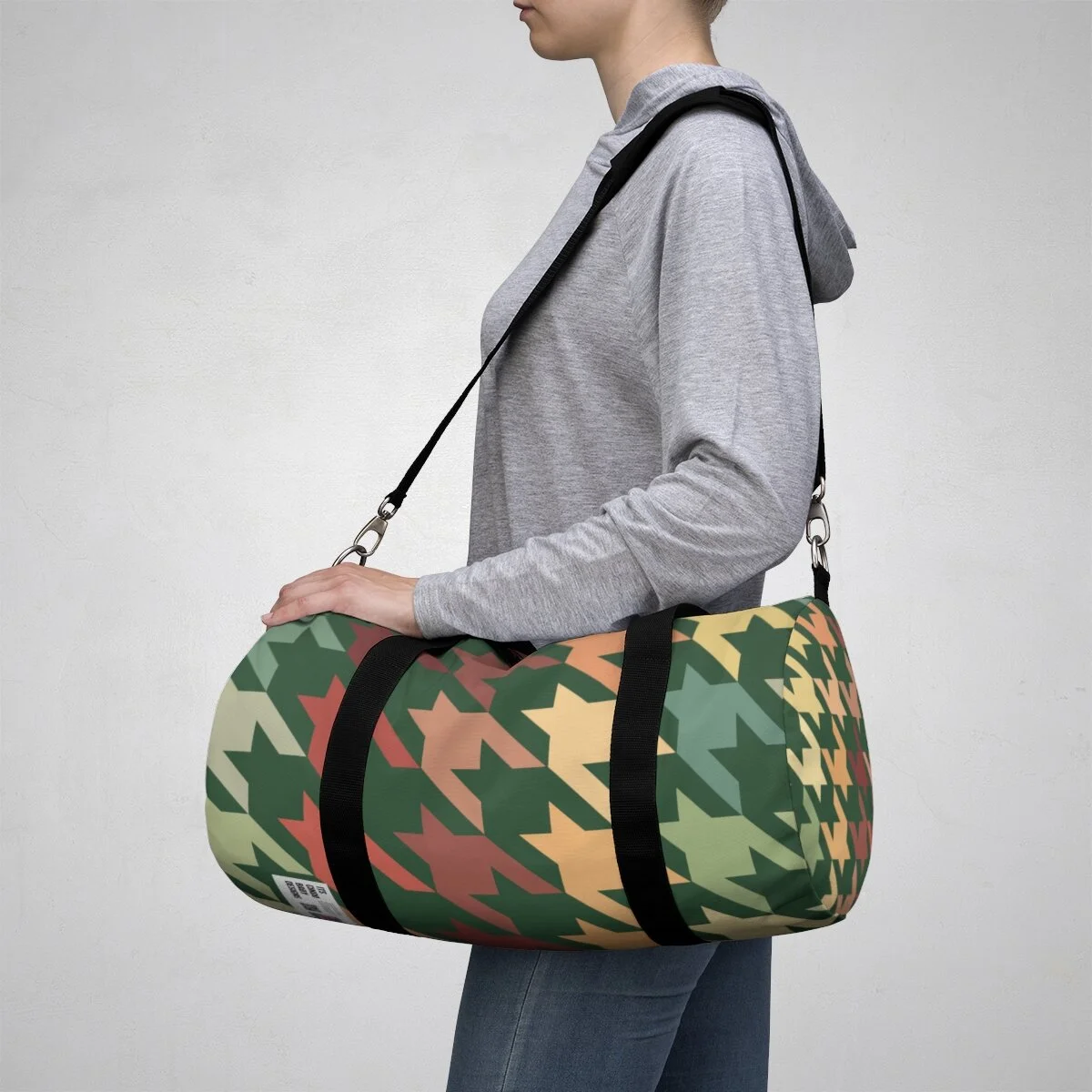 Grapefruit on Brown Houndstooth Duffel Bag