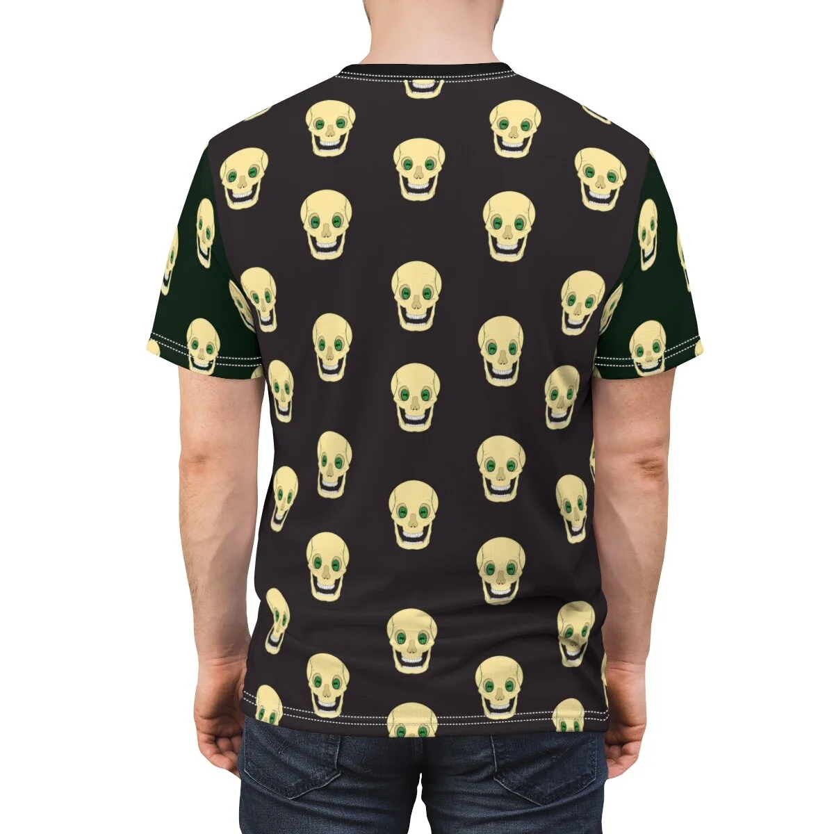 Black and Green sleeves all over Spooky Skull t-shirt