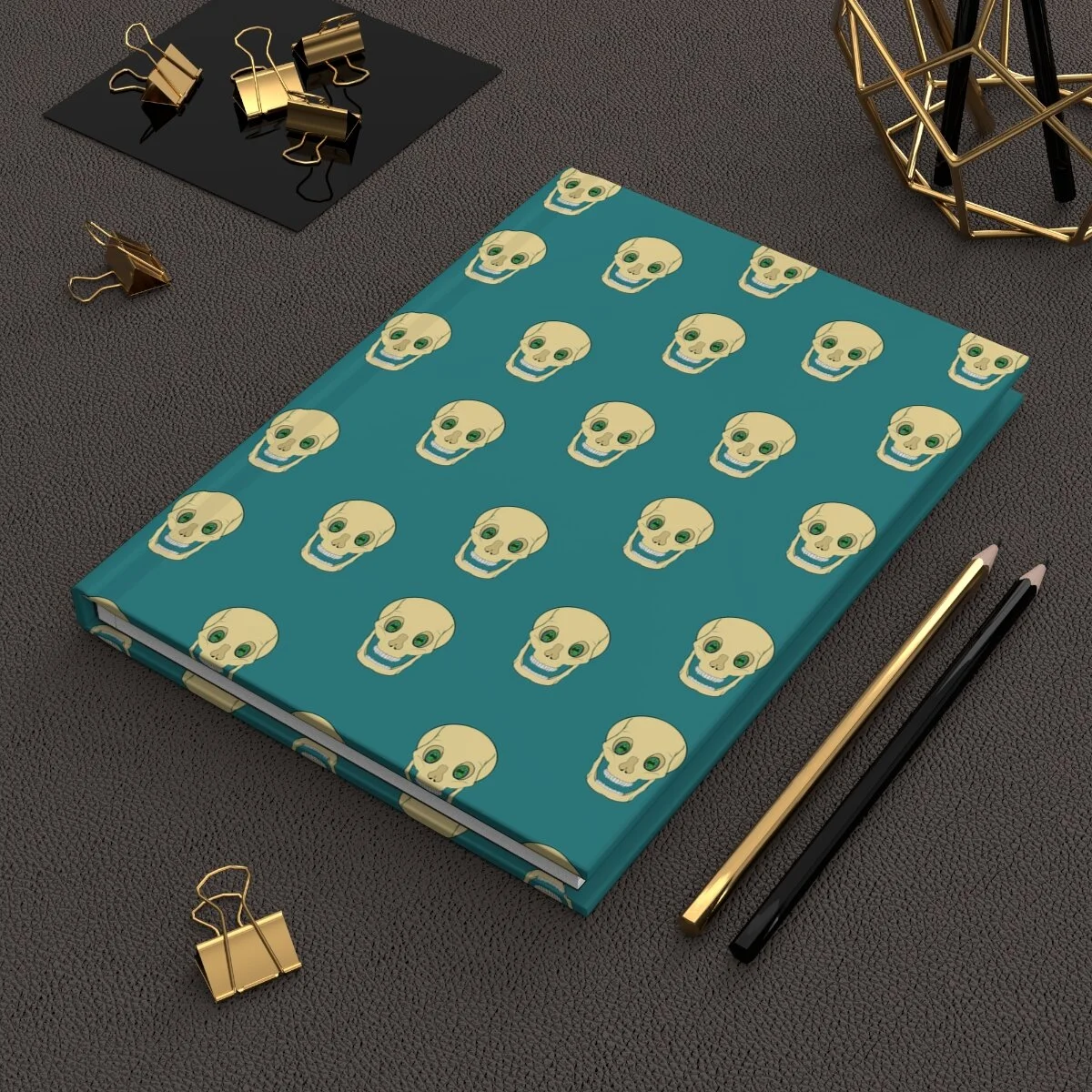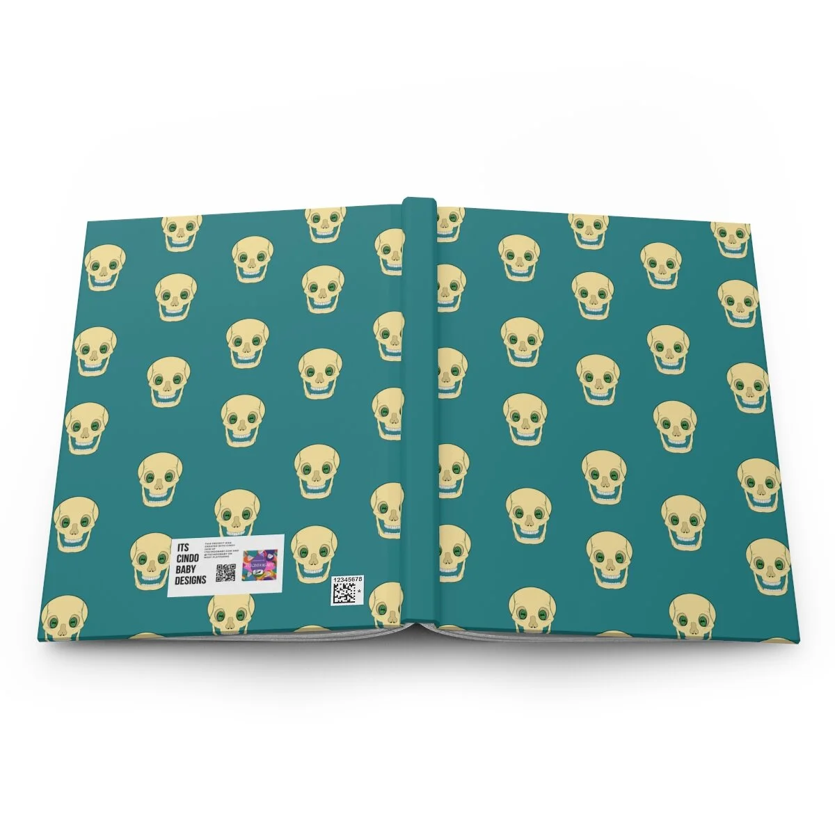 Spooky Skull on Teal Hardcover Journal Matte