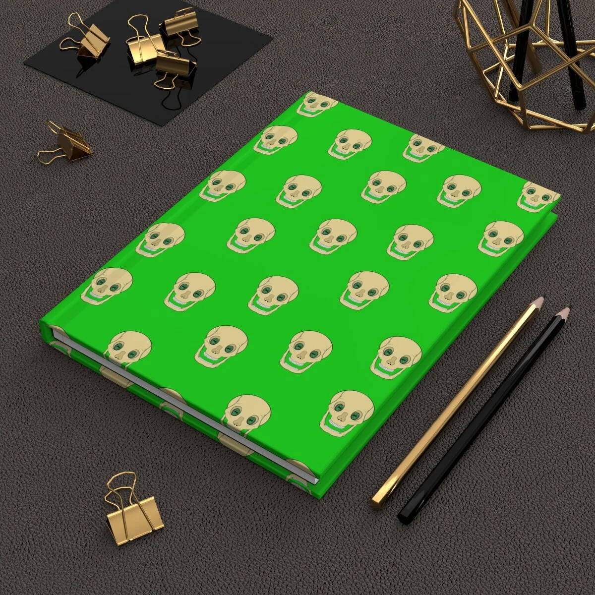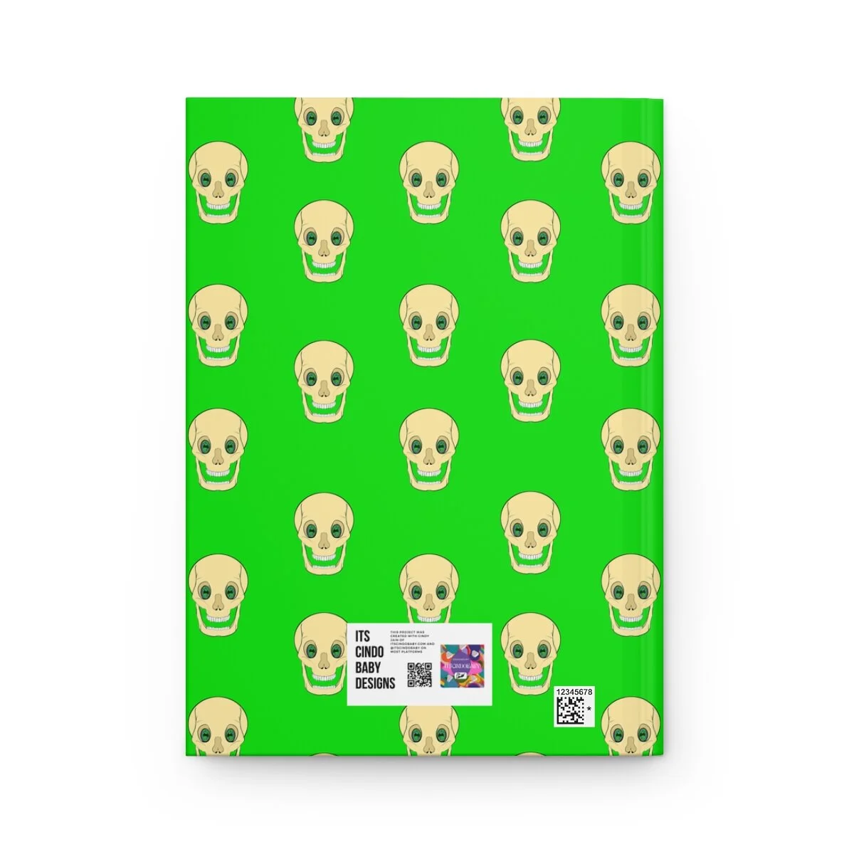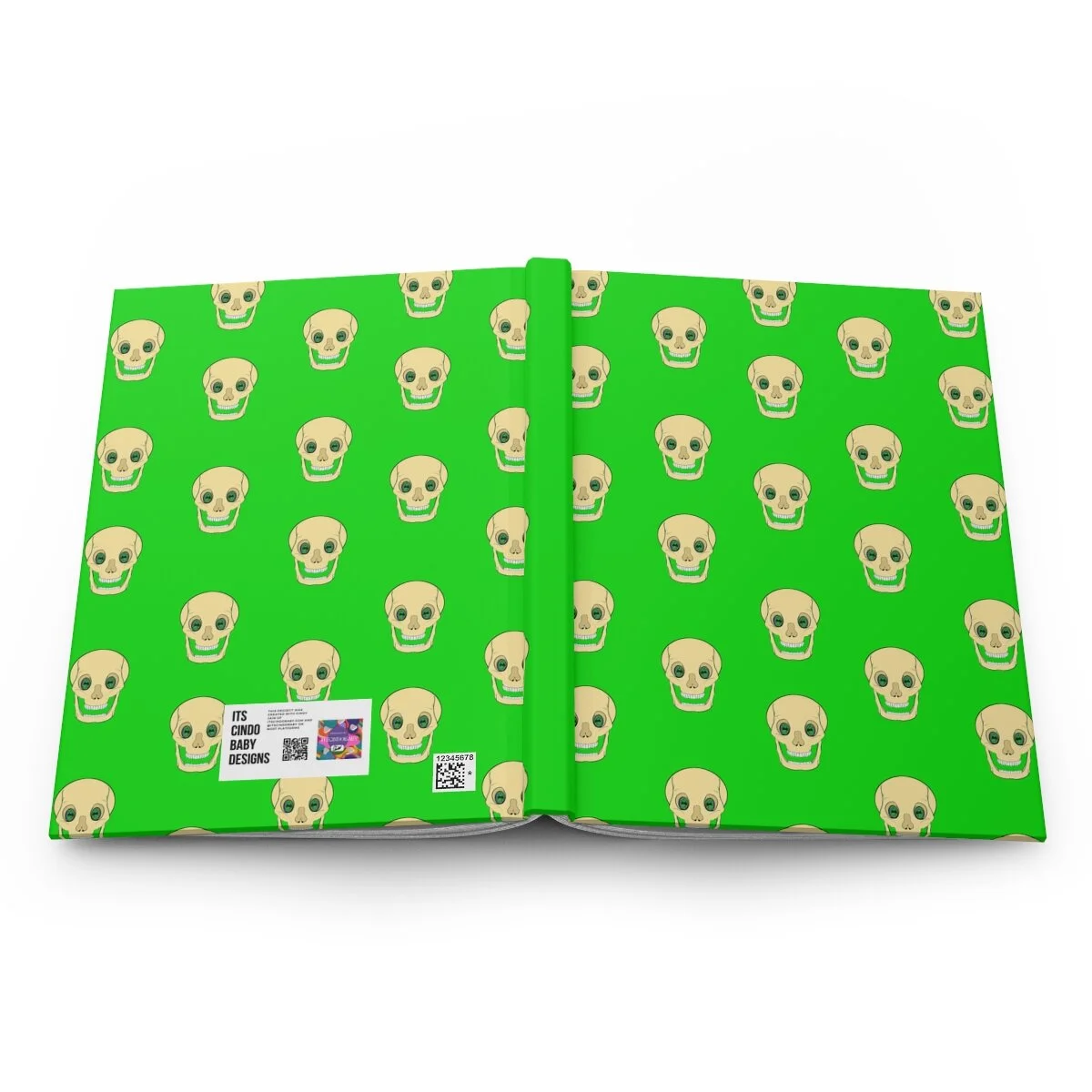 Spooky Skull on Lime Green Hardcover Journal Matte