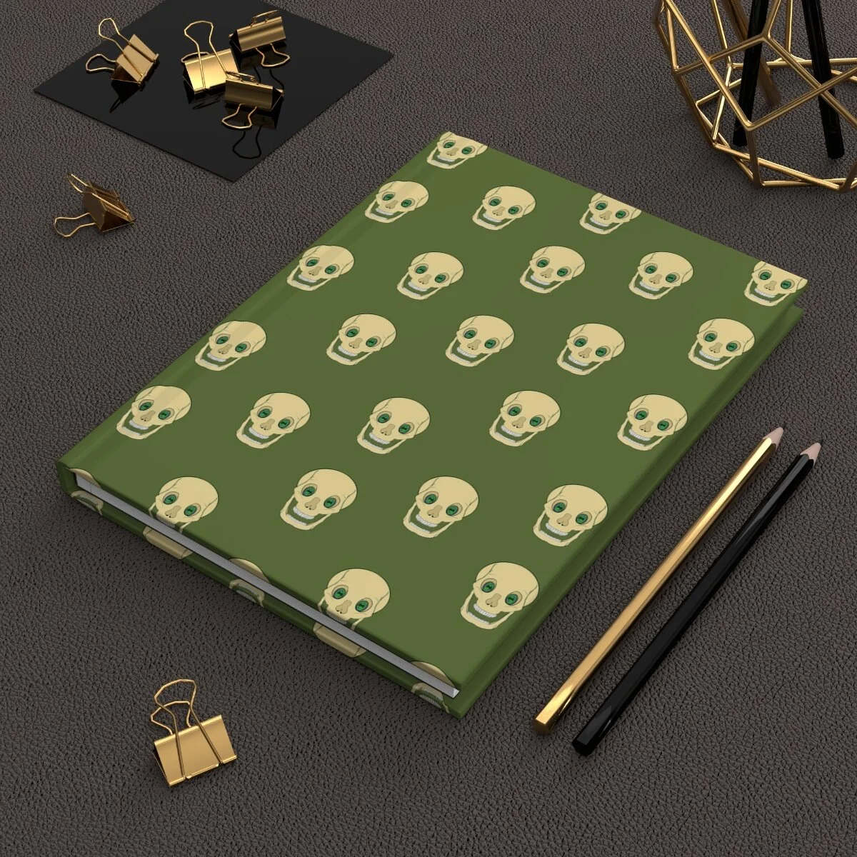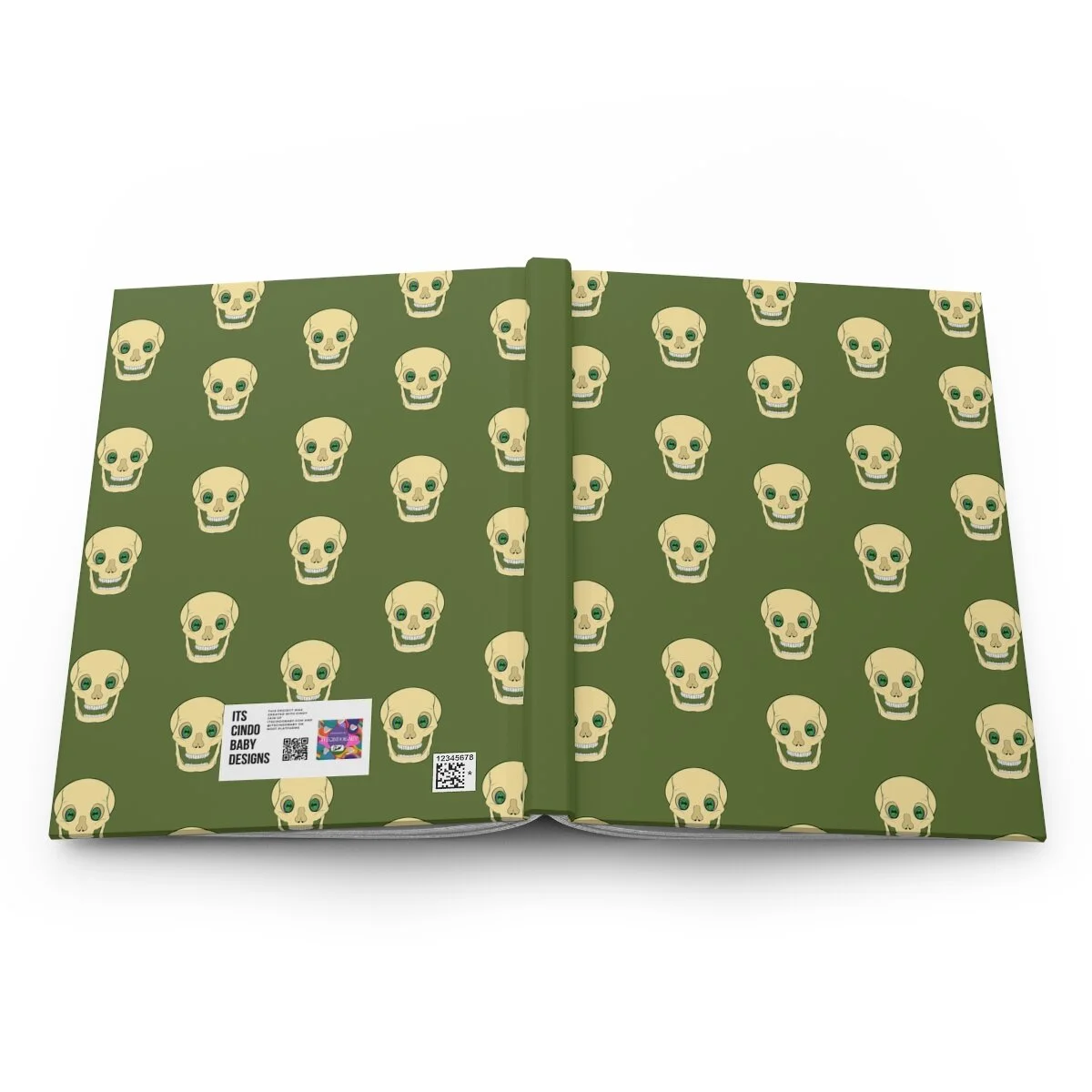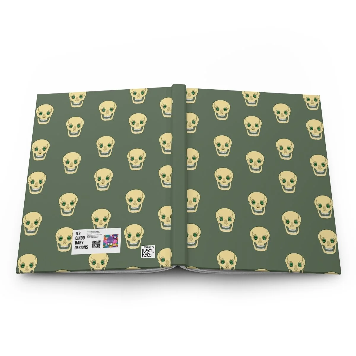 Spooky Skull on Lime Green Hardcover Journal Matte