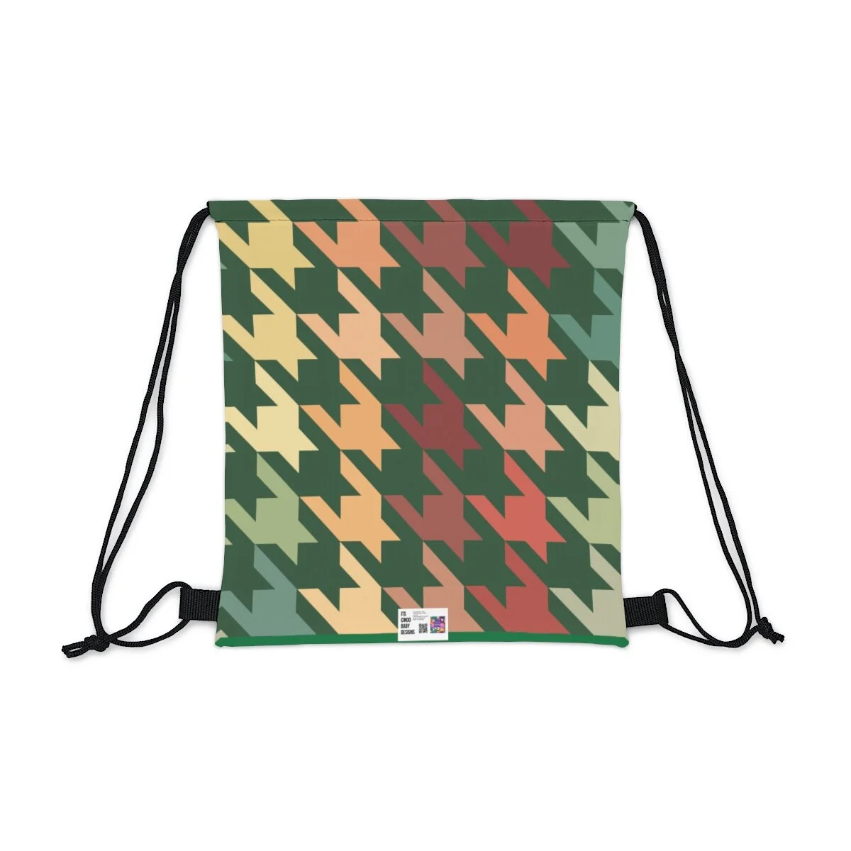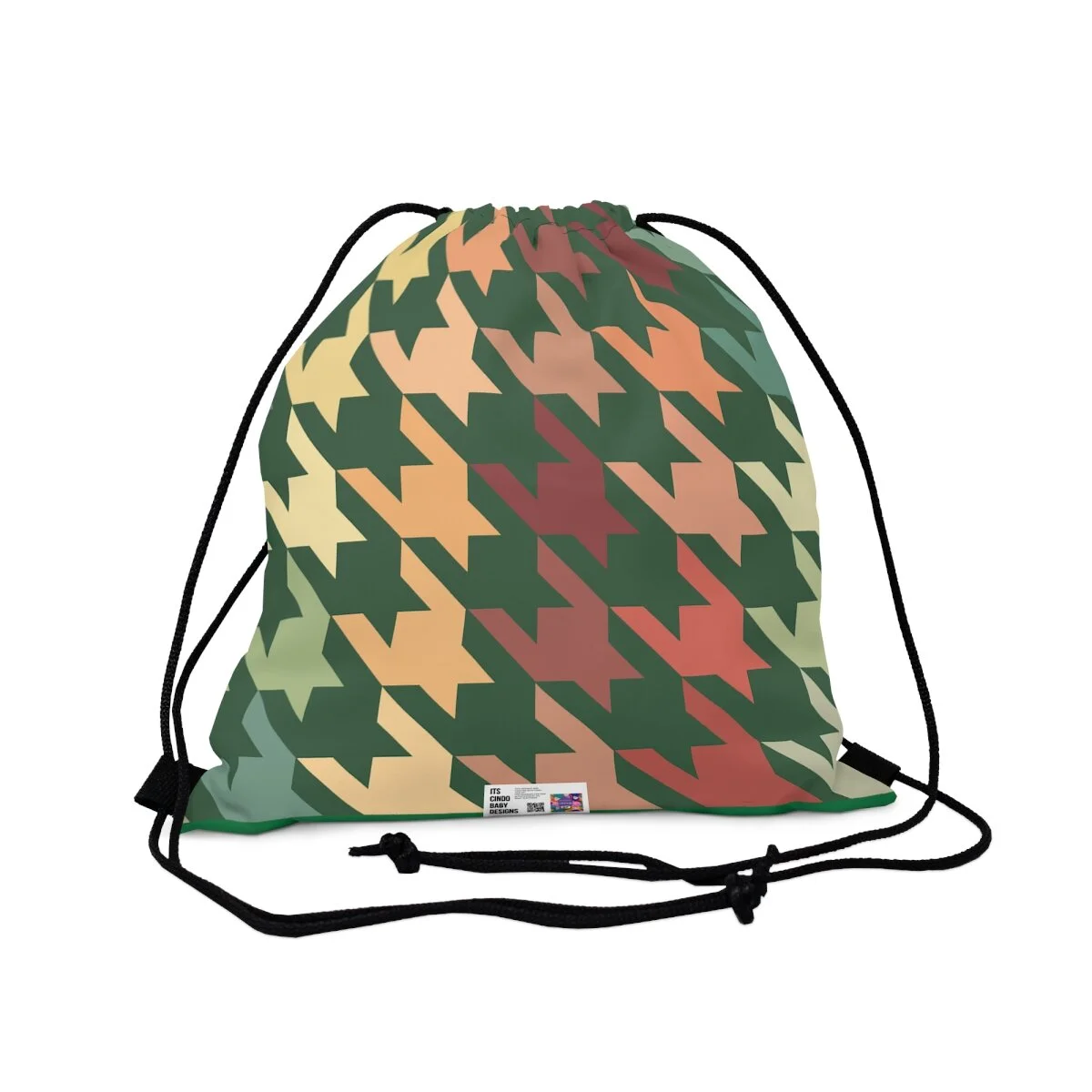 Houndstooth Outdoor Drawstring Bag -Grapefruit on Green