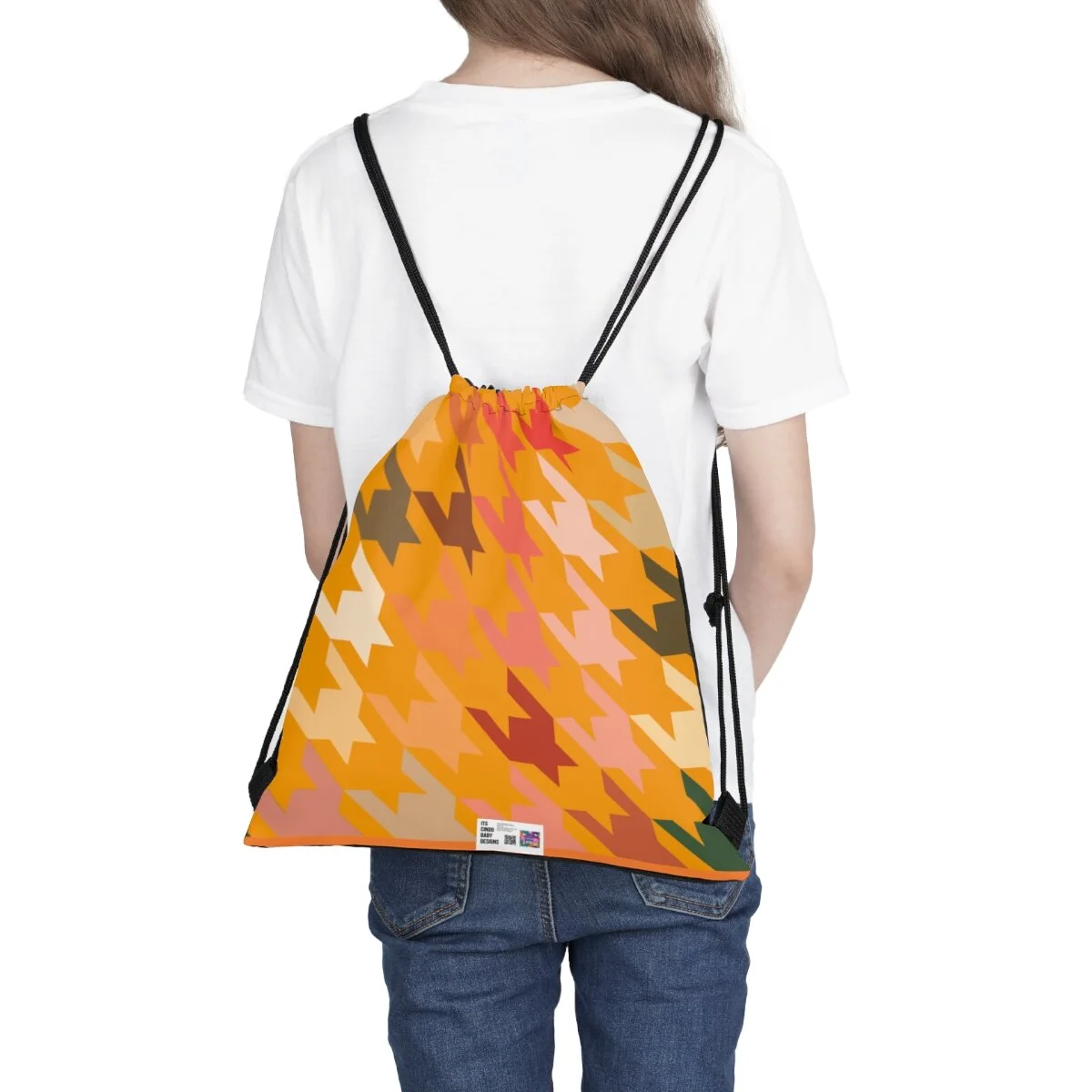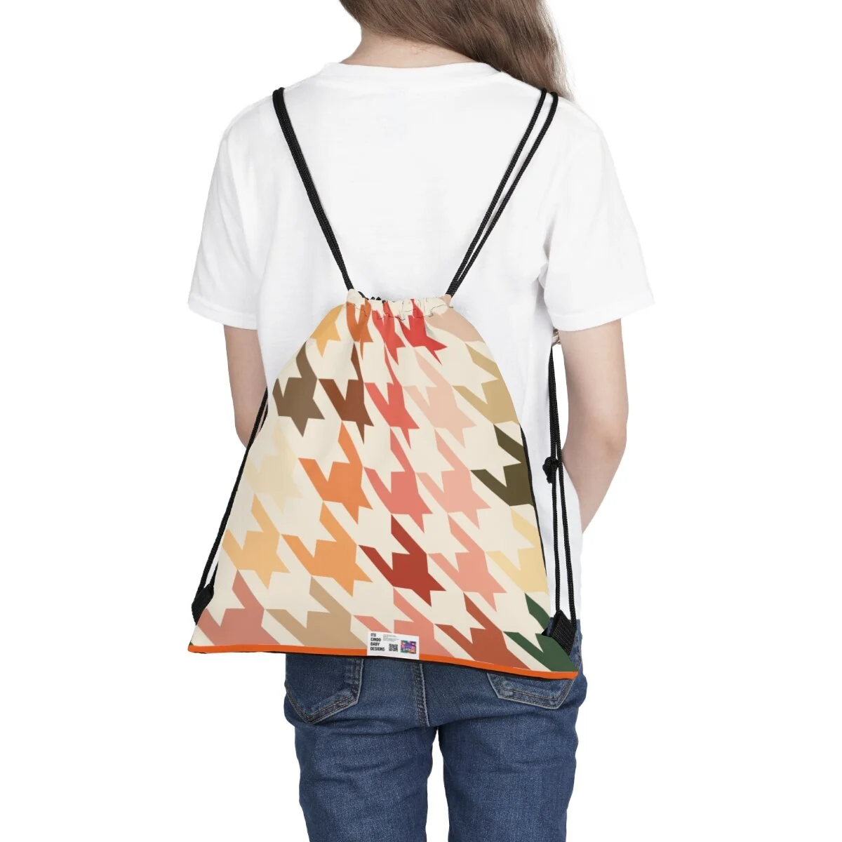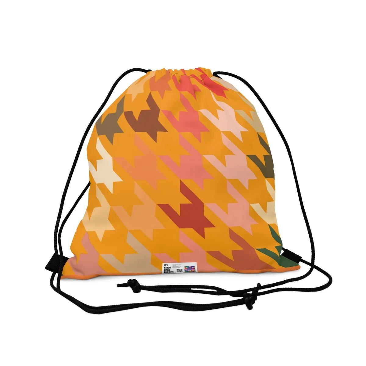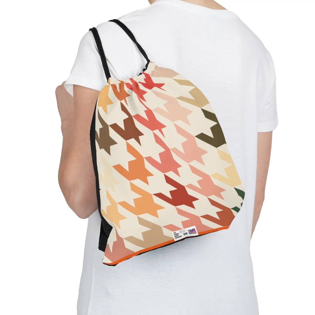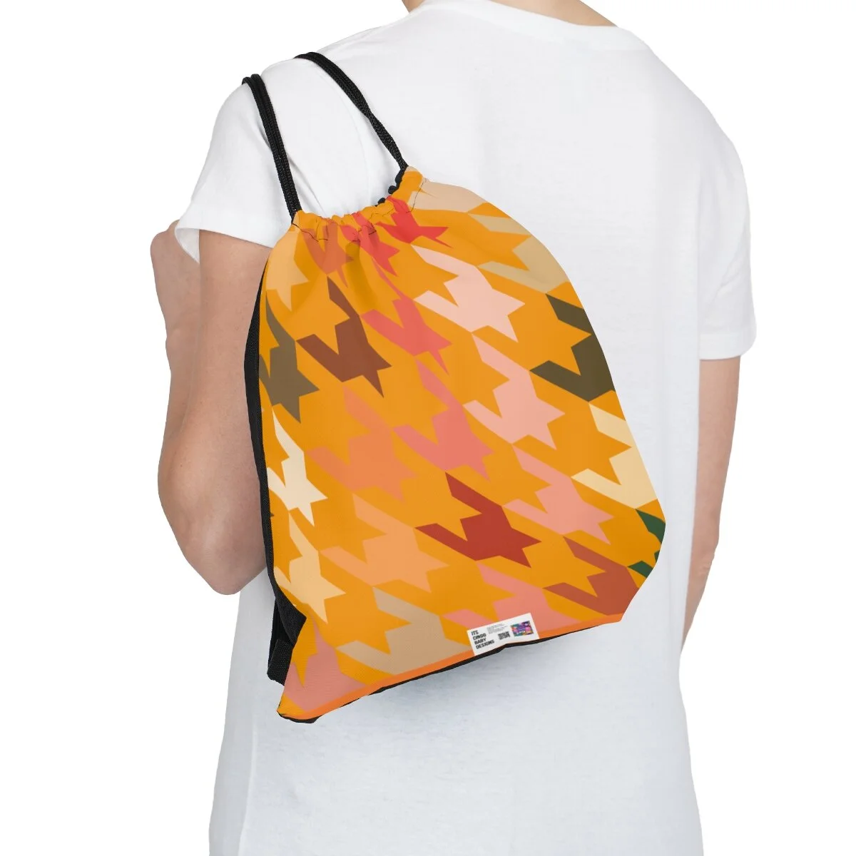 Houndstooth Outdoor Drawstring Bag -Fall Vibes on Orange