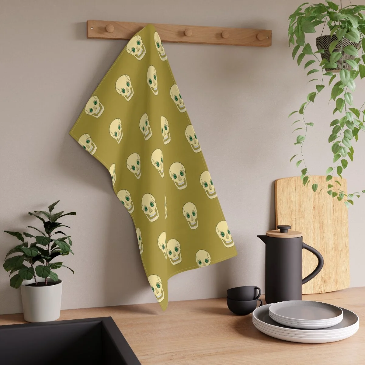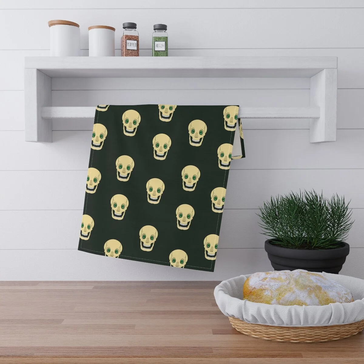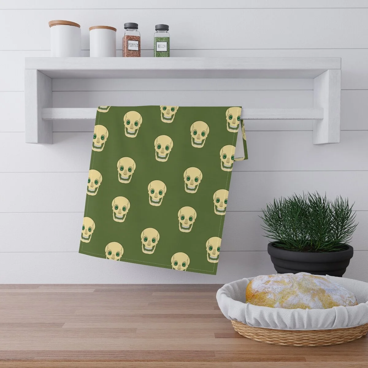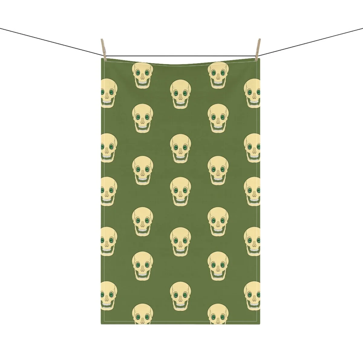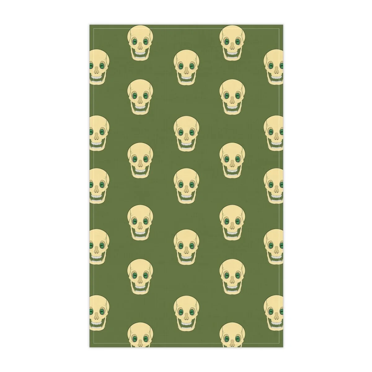 Spooky Skull on Moss Green Kitchen Towel