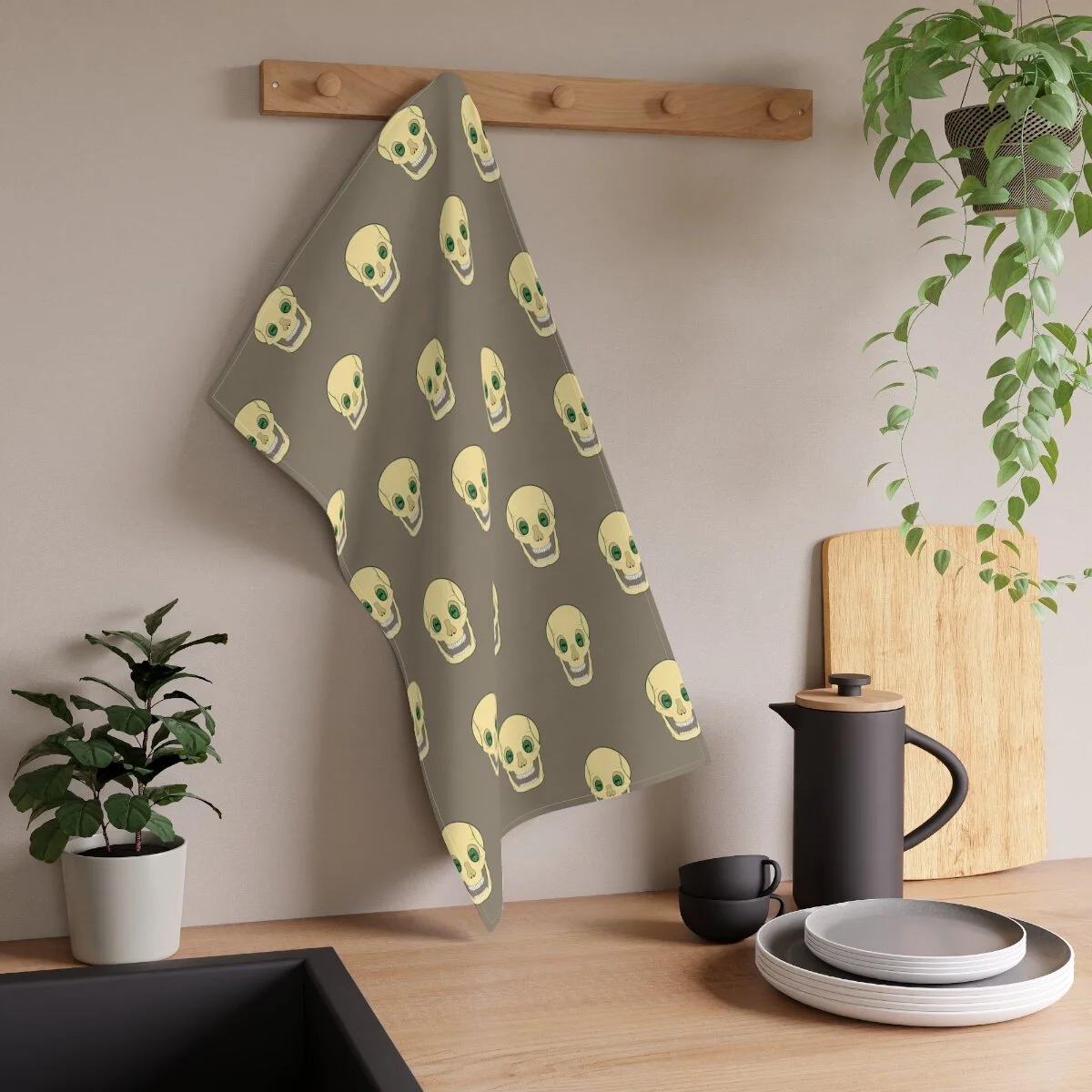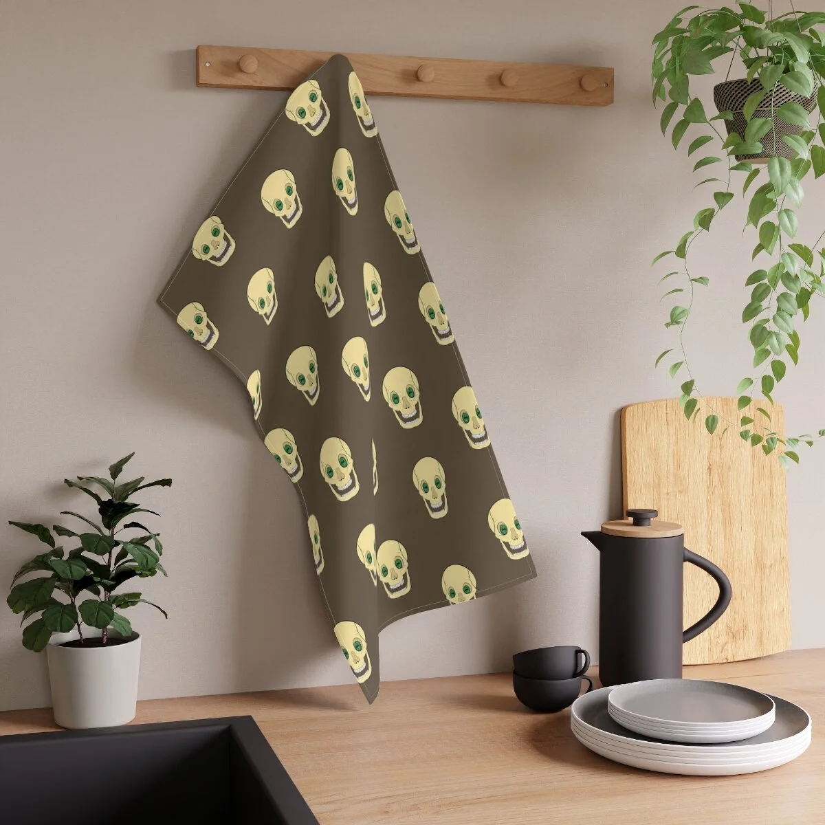 Spooky Skull on Khaki Kitchen Towel
