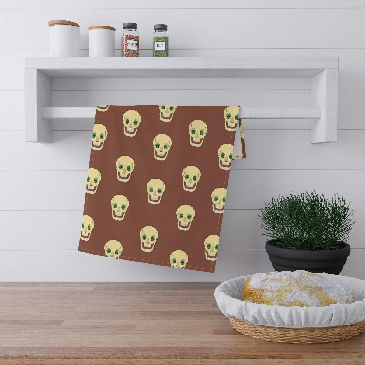 Spooky Skull on Cinnamon Kitchen Towel