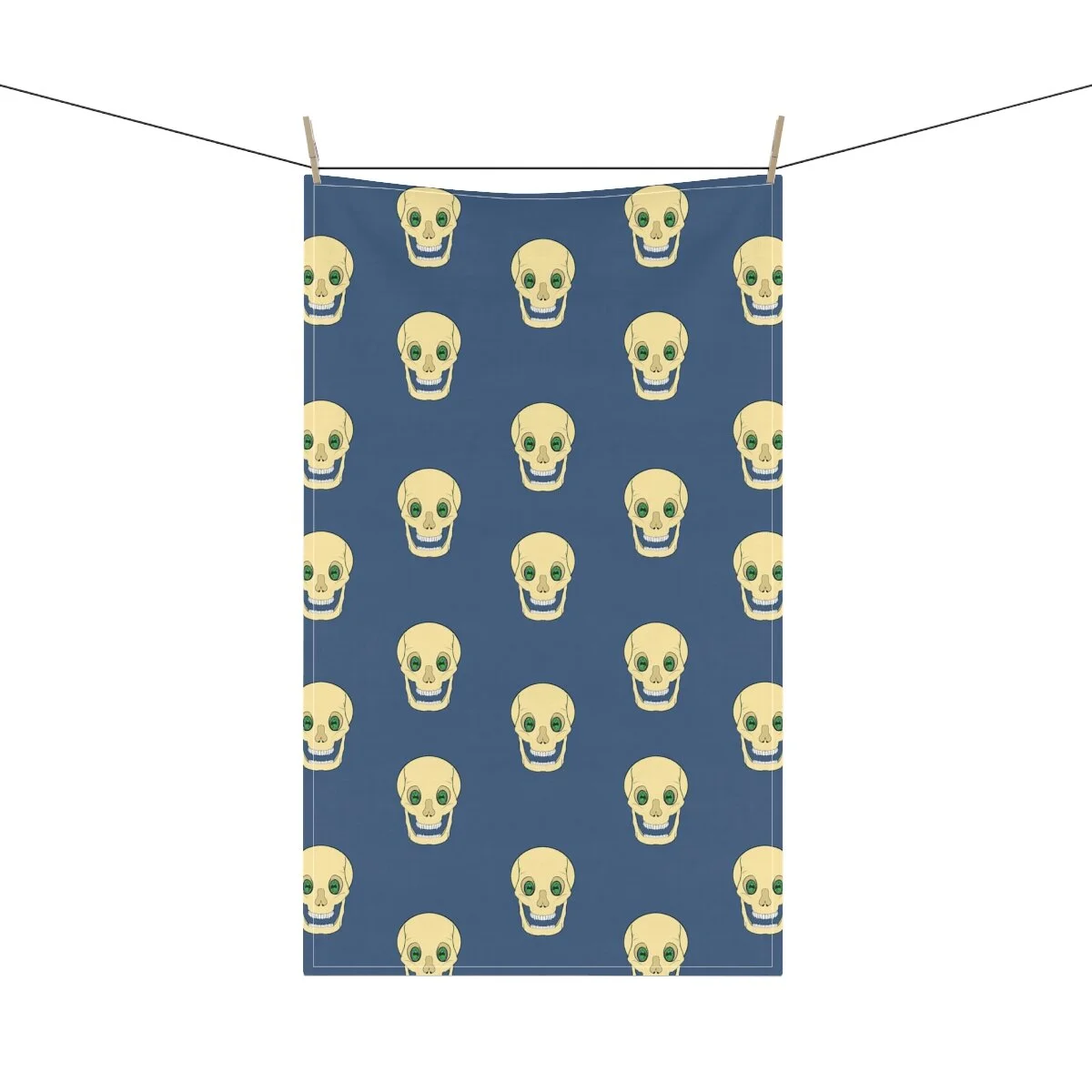 Spooky Skull on Dark Blue Kitchen Towel