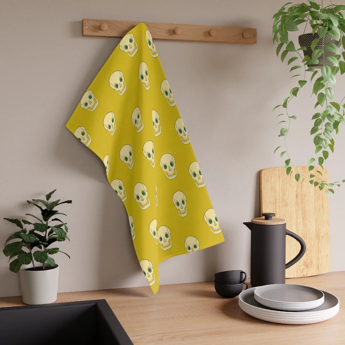 Spooky Skull on Yellow Kitchen Towel