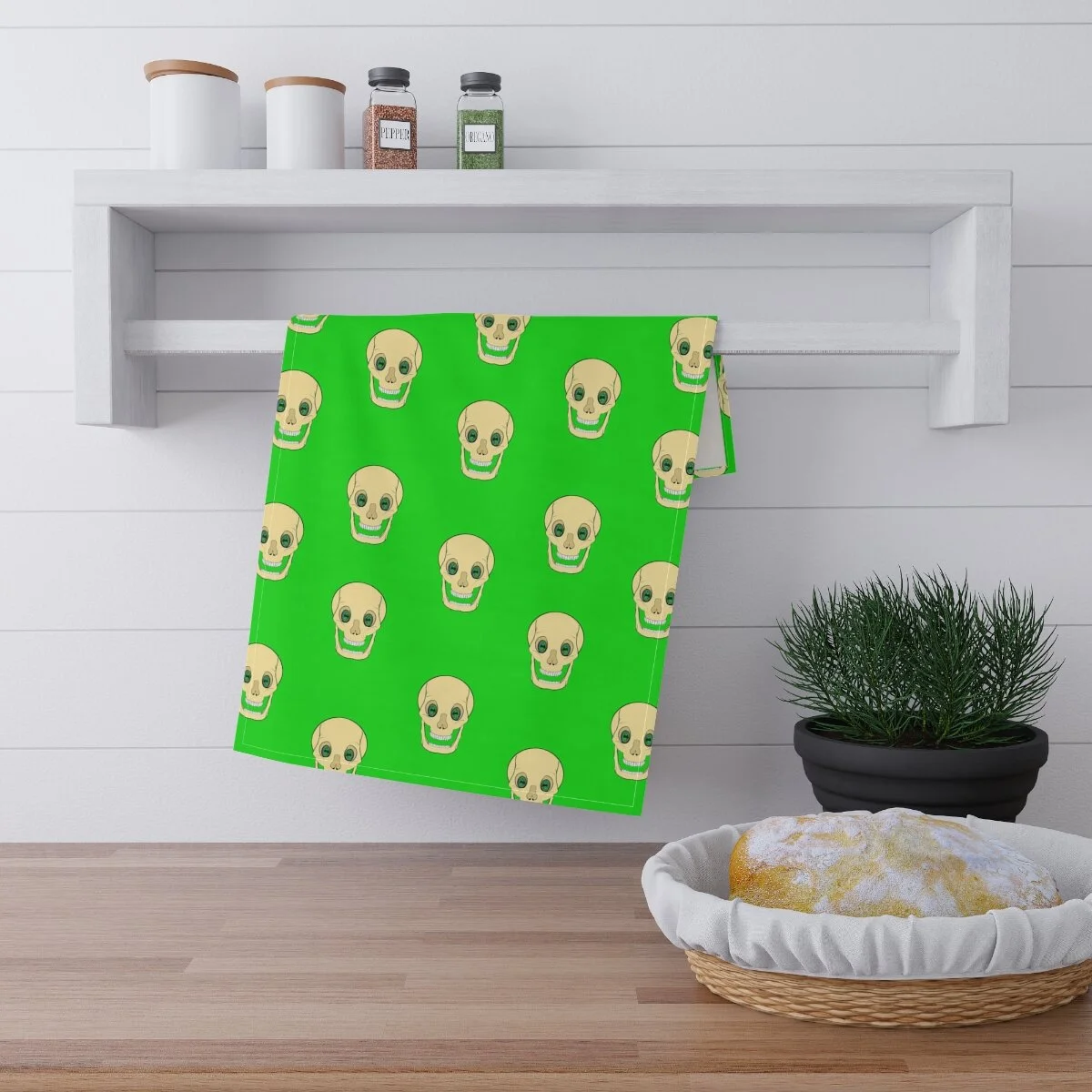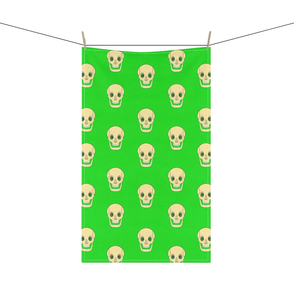 Spooky Skull on Lime Green Kitchen Towel