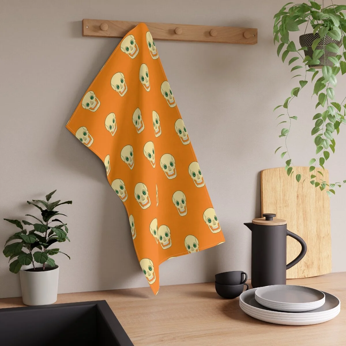 Spooky Skull on Orange Kitchen Towel